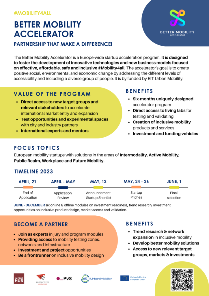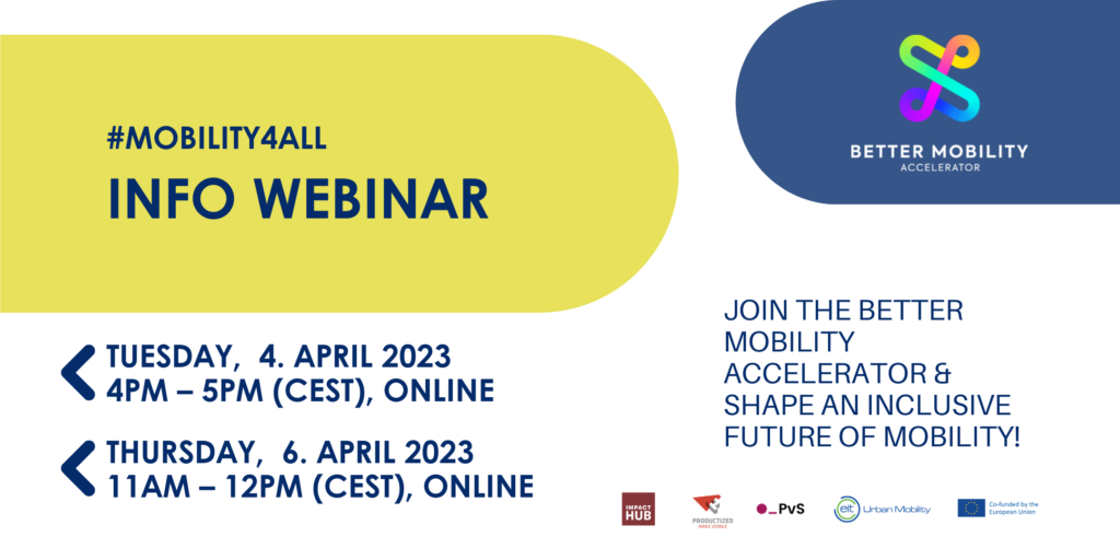Interessiert? Bewerbung bis 21. April ganz einfach über https://www.eiturbanmobility.eu/impact-ventures/accelerator/inclusive-mobility/